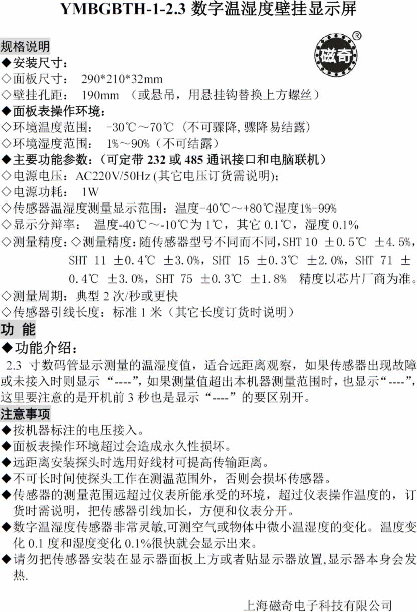 YMBGBTH-1-2.3壁挂温湿度看板显示器