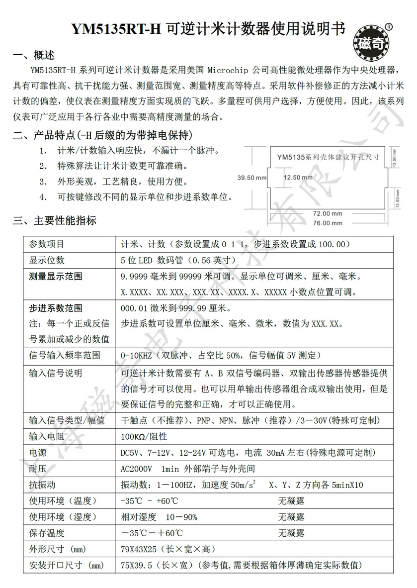YM5135RT-H可逆计数计米器